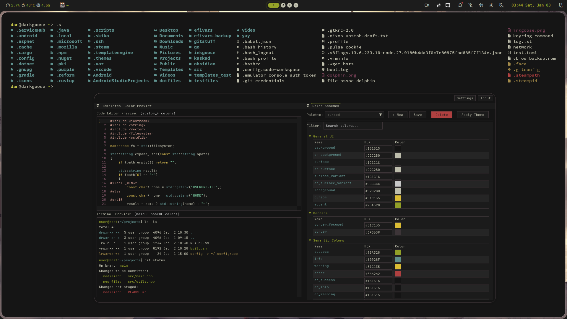 Define your color palette once, apply it everywhere. clrsync works with terminals, editors, window managers, and more.